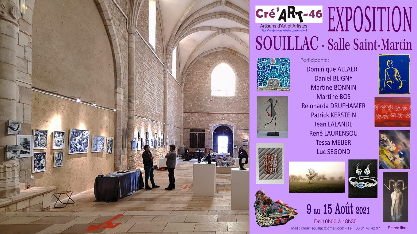Continuer la lecturel’Association Cré’ART-46 expose 10 artistes à Souillac du 9 au 15 août à la salle Saint Martin