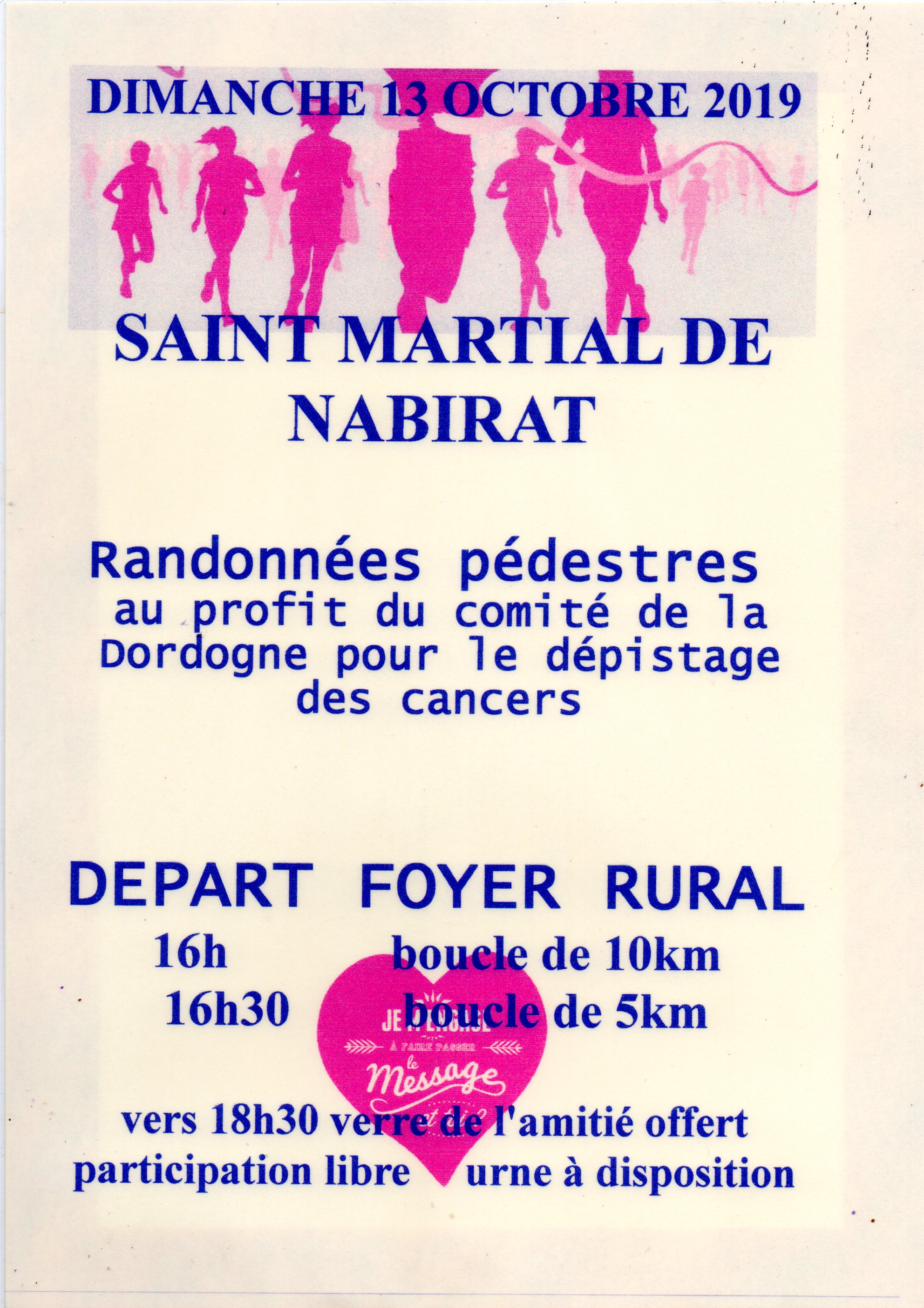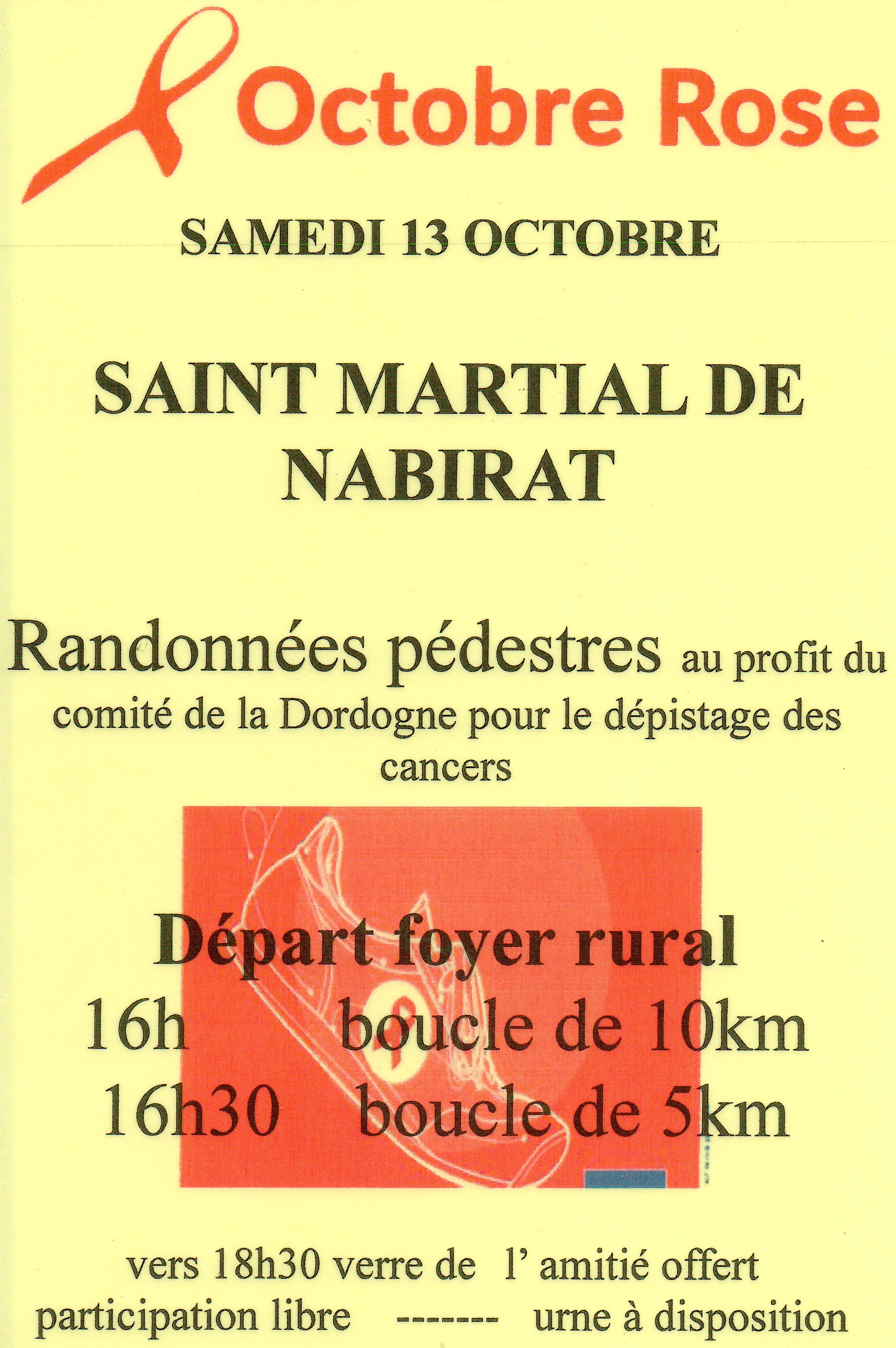 Continuer la lecture.Dans le cadre d’Octobre Rose Saint Martial de Nabirat organise avec le soutien du comité féminin pour le dépistage des