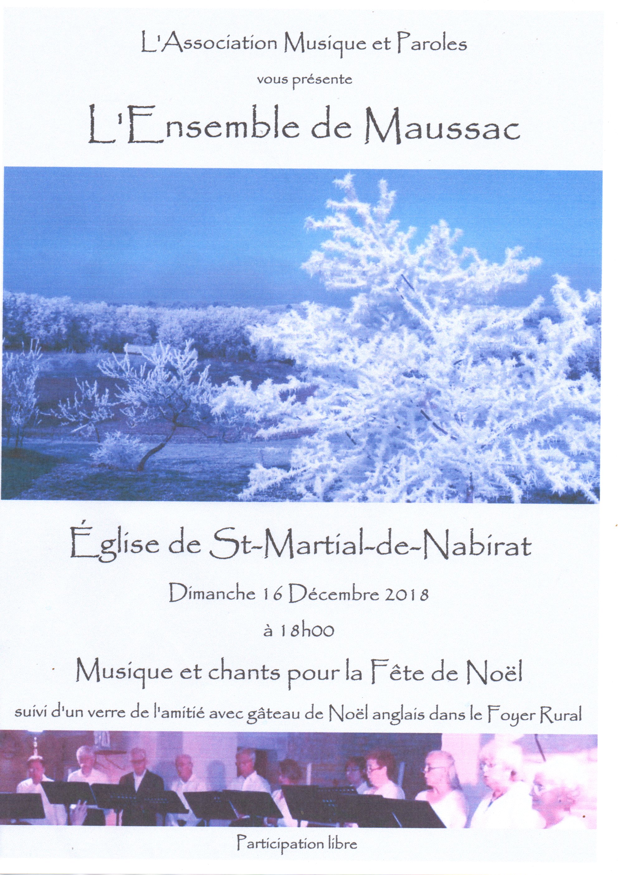 Continuer la lecture.L’ensemble musical et vocal de Maussac se produira en l’église de Saint Martial de Nabirat le DIMANCHE 16 DECEMBRE