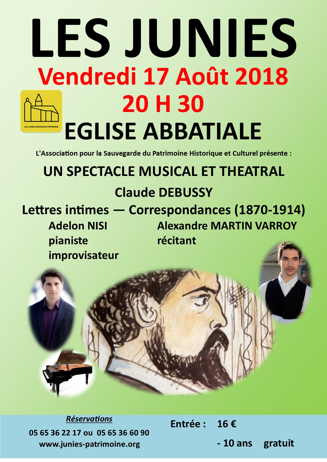 Continuer la lectureNotre prochaine soirée à l’Abbatiale des JUNIES le VENDREDI 17 Août à 20h30. Un spectacle musical et théâtral autour de Claude DEBUSSY (lettres intimes…etc…). Vous pouvez d’ores et déjà réserver vos places