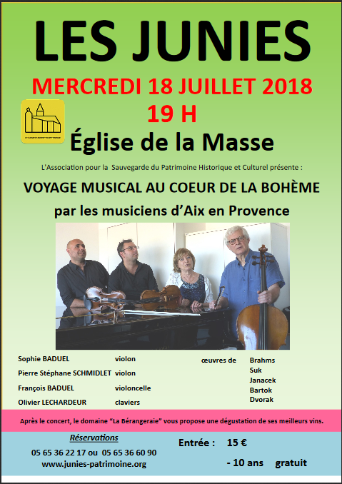 Continuer la lectureLe Mercredi 18 Juillet 2018, Eglise de LA MASSE Commune des Junies 46150, à 19 Heures, Les musiciens d’AIX en