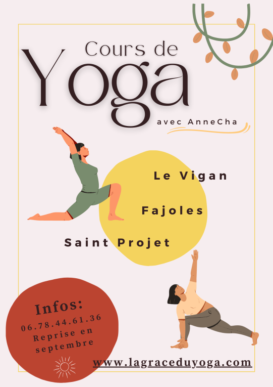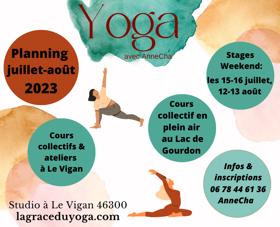 Continuer la lectureLes cours de yoga continuent au Vigan cet été ainsi qu’au Lac de Gourdon. Tarif: 15€. Retrouvez les horaires et