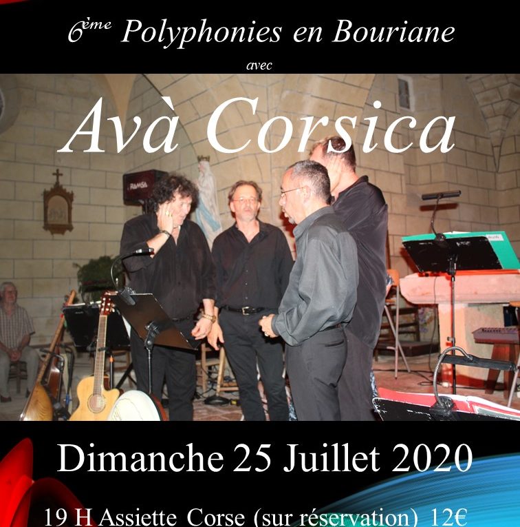 Les chanteurs musiciens d’Avà Corsica, à travers leurs chants traditionnels, racontent l’Histoire du peuple Corse à laquelle ils sont liés fermement. Nous les recevons régulièrement pour le Festival Polyphonies en Bouriane et chaque fois le charme opère, un plaisir magique, un voyage en Corse le temps d’un concert envoûtant, organisé par l’Association C.A.P. Milhac.