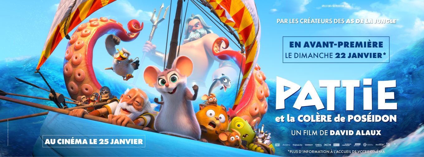 Dimanche 22 janvier à 16h00 rendez-vous au cinéma Louis Malle de Prayssac, pour l’avant-première du film Pattie et la colère de Poséidon, film produit en région par les studios TAT de Toulouse !