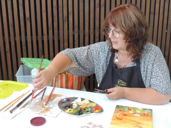 Le vendredi, avant le vernissage, le jury composé de l’artiste invitée d’honneur Lydie Prin, du galeriste Renzo Calderan, d’Antoinette Cand, professeure d’arts plastiques et de deux membres du bureau d’AVEC Pradines ont délibéré, à huis clos, pour choisir deux œuvres. Le lundi après-midi, Lydie Prin, artiste cotée, ayant exposé à Paris, aux États-Unis, a eu la gentillesse de proposer une démonstration très appréciée des artistes présents et du public ravi et attentif.