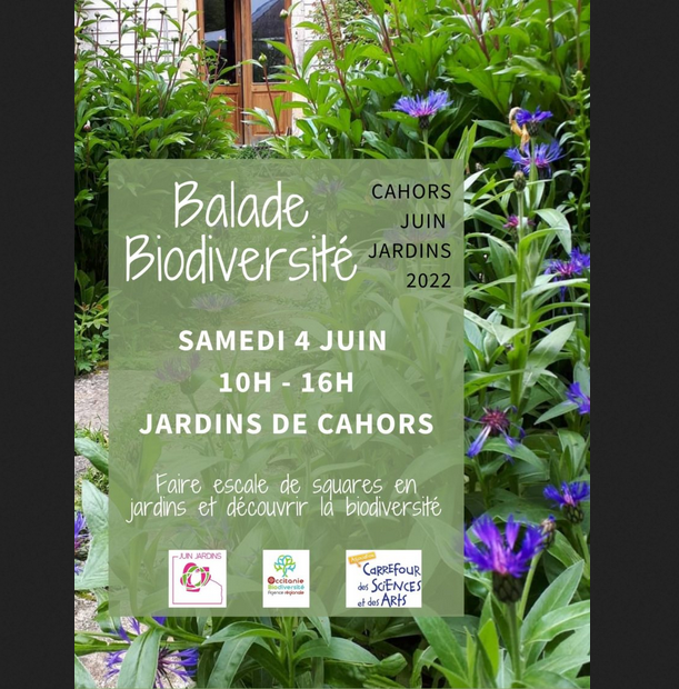 Faire escale de squares en jardins privés et découvrir la biodiversité avec Magali, dans le cadre de Cahors Juin Jardins 2022. Nous visiterons des jardins où la biodiversité sauvage rencontre les plantes des jardins et nous porterons une attention particulière aux pratiques favorisant la biodiversité dans les jardins. La balade fera environ 8 km sur toute la journée, nous ferons une pause à midi au jardin de l’Agora aux allées Fénelon. N’oubliez pas de vous munir de bonnes chaussures, d’eau et de votre pique-nique.
