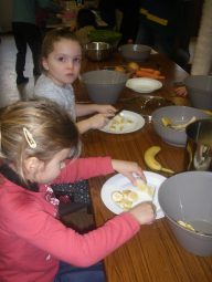 De plus, l’entrain est tellement plus grand pour les enfants à manger les plats de légumes qu’ils ont préparés : le petit bateau d’endive au fromage frais sur boulettes de lentilles vertes et carottes est irrésistible. Et que dire du goût de la compote pommes bananes que l’on prépare soit même.