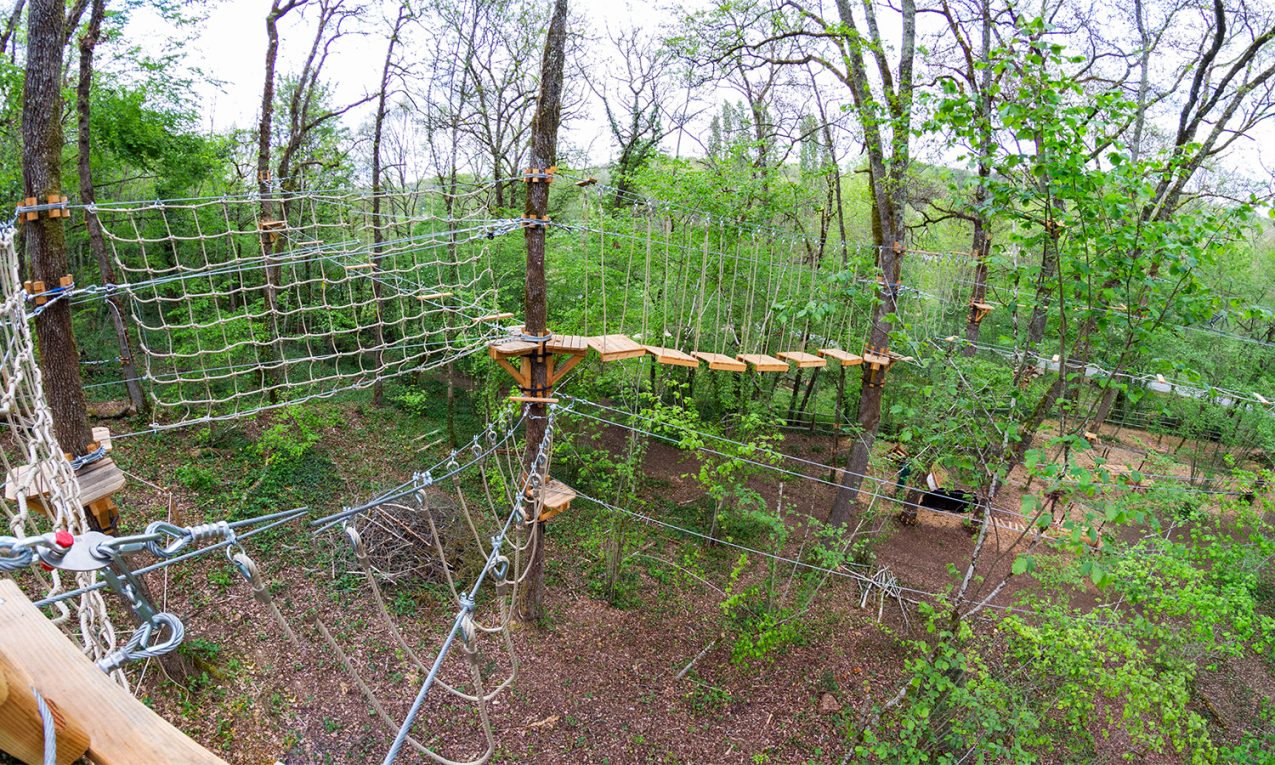 Accrobranche, des parcours de différentes couleurs selon les âges (à partir de 2 ans et jusqu’à 14 ans et +). Ils certifiés aux normes de sécurité EN 15567-1-2.et vérifiés chaque année.