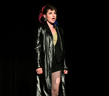 Des spectateurs totalement bouleversés qui, par moments, n’osaient même plus applaudir tant l’émotion était à son comble ! Dès l’ouverture, le décor annonce le choix esthétique punk « No future » à travers le personnage du maître de cérémonie, irrévérencieux, provocateur mais porteur d’une note d’espoir. Sarah Lazerges entre en scène, tout de noir vêtue, bas résille troués… Au fond du plateau, un paravent va servir de vestiaire et de révélateur d’ombres : celles de l’artiste changeant de tenue, dans un jeu d’ombres suggestif. La chanteuse, qui porte la voix des immigré.e.s, des clandestin.e.s, a choisi la forme du cabaret pour transmettre un message politique.