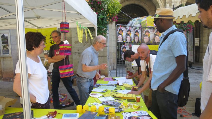Les passants étaient invités à remplir la fiche jaune avec leur nom et leur prénom et à signer les différentes pétitions qui serviront à interpeller les autorités. « Plus de 21 millions de personnes ont été forcées de tout laisser derrière eux pour fuir la guerre ou échapper à des persécutions. La France n’en accueillent que 273 000, 18e pays d’accueil des réfugiés » explique Daniel Birou. Le groupe Amnesty International demande aux États d’organiser un accueil digne, humain, de ne pas conclure d’accord avec des pays qui ne respectent pas les droits humains et de renforcer la protection.