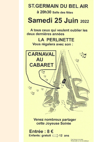 Le samedi 25 juin à 20h30 la Perlinette vous présentera son nouveau spectacle à la salle des fêtes de Saint Germain du Bel Air.