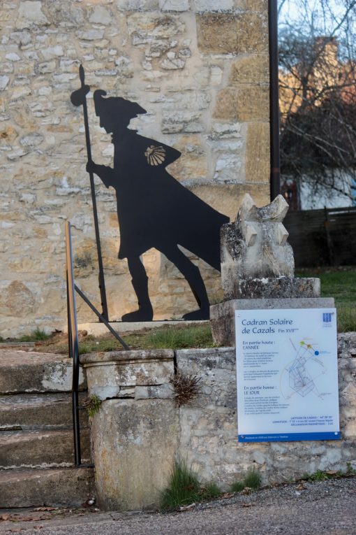 Cazals se trouvant sur le GR 652, itinéraire alternatif du chemin de Saint-Jacques de Compostelle, l’association pour la sauvegarde du patrimoine de Cazals a décidé d’installer une sculpture d’un pèlerin, projet confié à Thomas Duchesne, artisan d’art à Salviac. Il a dessiné et créé un marcheur de Saint Jacques en métal découpé, peint en noir, de 2 m de haut, de style moyenâgeux. Pour son installation un socle en béton a été préparé devant la chapelle grâce aux employés de la voirie qui ont également aidé Thomas Duchesne à la mise en place du pèlerin.