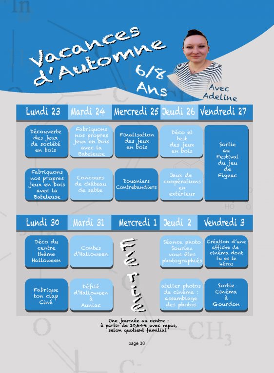 - « Halloween au cinéma » e seconde semaine : décoration, ambiance ciné (réalisation d’un clap ciné), contes d’Halloween, déguisement et défilé à Anglars-Nozac, séance photo (comme des stars de cinéma)
