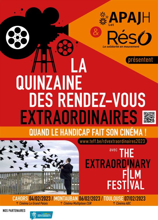En décembre 2021, à l’occasion des Journées Internationales du Handicap, l’APAJH du Lot a relayé » l’Extraordinary Film Festival » de Namur BE, un événement unique en Belgique qui propose au grand public, aux professionnels et aux personnes concernées une image positive de la personne en situation de handicap.
