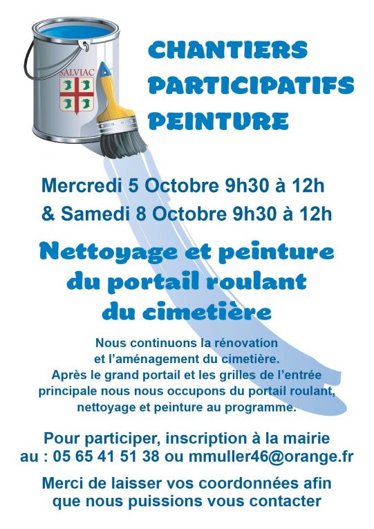 Samedi 8 octobre, de 9h30 à 12h – CHANTIER PARTICIPATIF PEINTURE