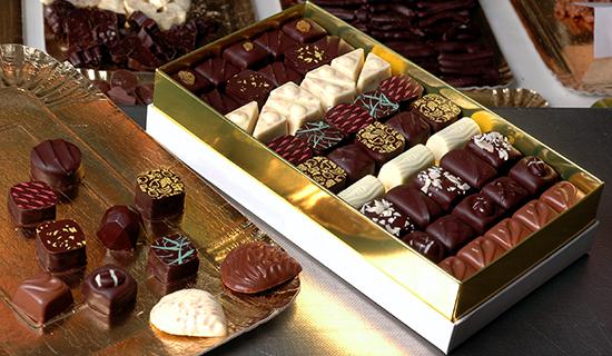 - Un bonbon de chocolat ou un chocolat praline : est un chocolat fourré ou un mélange de plusieurs chocolats (gianduja, chocolat au lait, blanc, etc.). Sa teneur minimale en chocolat doit représenter 25 % du poids total du produit.