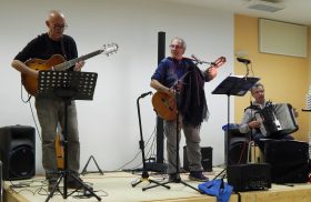 Dernier concert gratuit de la saison 2018 , ce jeudi 30 Août à partir de 19h30 sur la place, Mets Saisons (Tarterie / Salon de thé) et Le Velvet (Brasserie) invitent le « Trio Vagabondes » pour une balade à travers la chanson française Bernard Stimbre sera accompagné par Thierry Roques et Guy Mareuil.