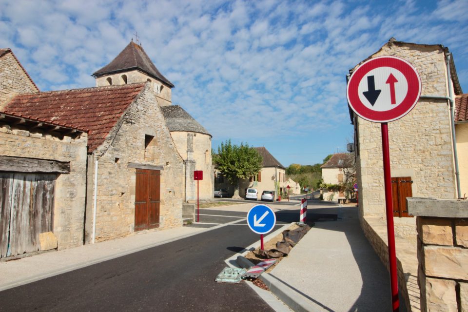 Légende et crédit photo : Dans la traversée du village de Gindou tout indique la volonté de protéger les piétons. (©Luc Gétreau)