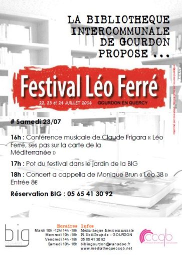 BIG – Festival Léo Ferré Flyer 4par page (1) Publié le jeudi, 21 juillet 2016 par Bibliothèque Intercommunale Gourdon