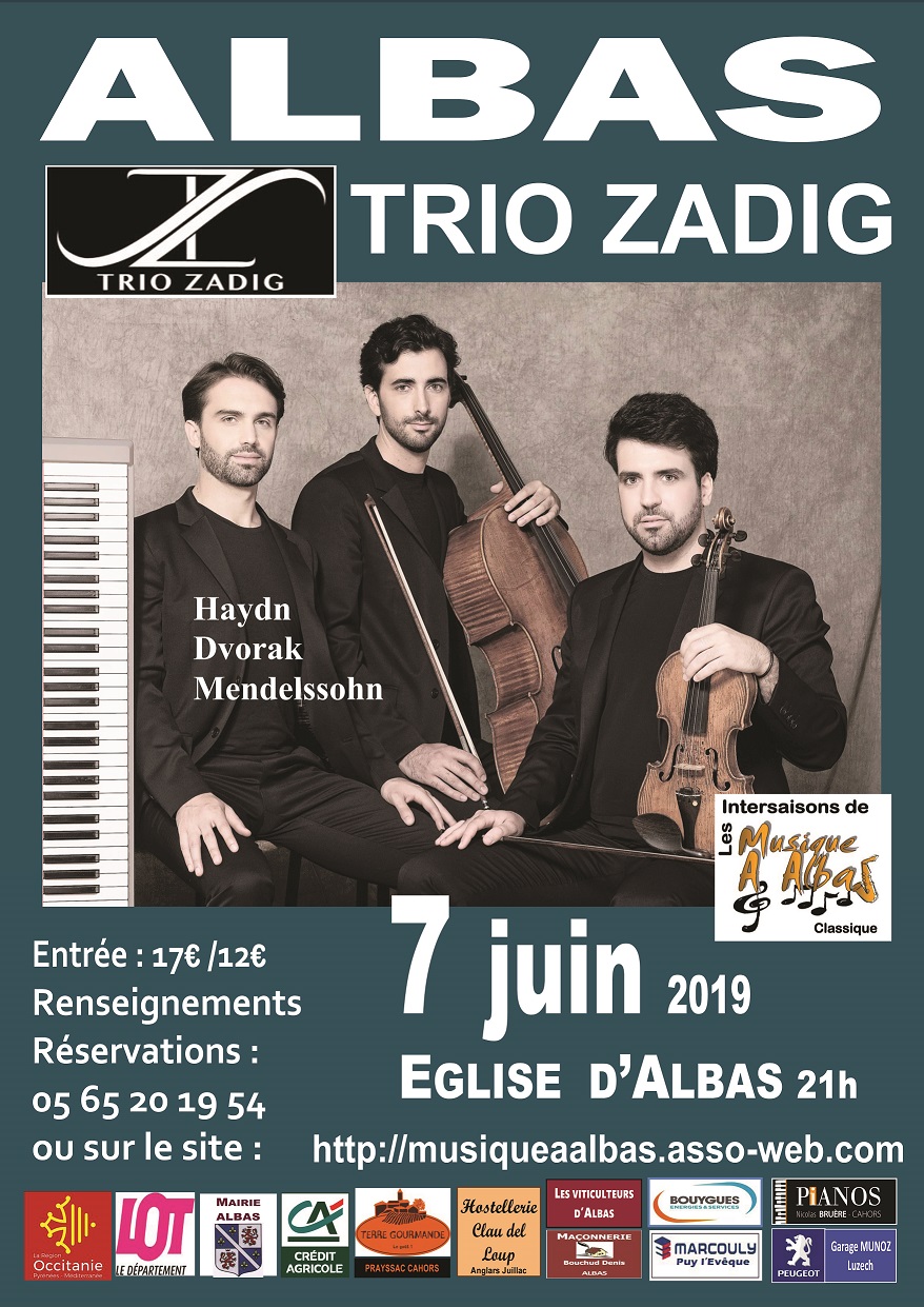 Le Trio Zadig, né de la rencontre de deux amis d’enfance, Boris Borgolotto, violoniste, et Marc Girard Garcia, violoncelliste, puis du pianiste américain Ian Barber, a déjà été récompensé par 11 prix internationaux. Il allie sensibilité et intensité de jeu au sein d’un répertoire allant de Haydn à la musique contemporaine. Le Trio captive le public par sa virtuosité, son élégance, puisant dans l’amitié toute sa force et son authenticité.