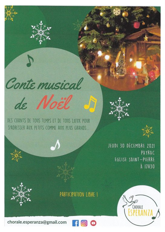 Depuis plusieurs années, une chorale formée d’étudiants et de jeunes actifs vient nous régaler d’un joli concert de Noël dans un des villages de la Bouriane. Après Gourdon, le Vigan, cette année c’est celui de Payrac qui les accueillera en son église, le jeudi 30 décembre prochain à 17h30. N’hésitez pas à vous déplacer, car vous passerez un bon moment avec un des voix magnifiques, et un répertoire approprié à cette période de fête, pourtant bien tristounette !