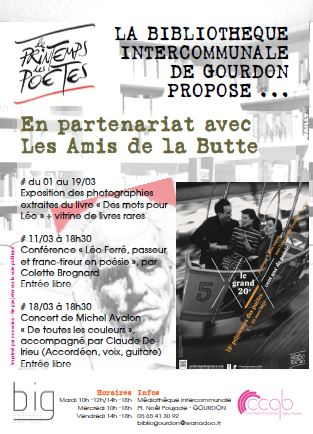 Vendredi 18 mars à 18h30 Concert de Michel Avalon « De toutes les couleurs », accompagné par Claude Delrieu (Accordéon, voix, guitare) Entrée libre