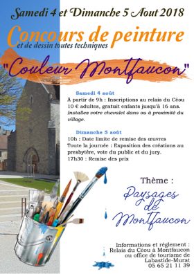 Dans le cadre des Journées du patrimoine rural et paysager des causses du Quercy organisées par la Communauté de communes du causse de Labastide-Murat qui auront lieu les 3, 4 et 5 août à Montfaucon, l’association Des pierres en héritage propose un concours de peinture sur le thème « Paysages de Montfaucon ».