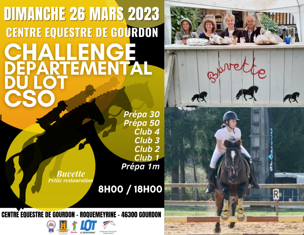 Dimanche 26 Mars, le Centre Equestre à Gourdon, lieu dit Roquemeyrine, organise son Concours de saut d’obstacles annuel Départemental.