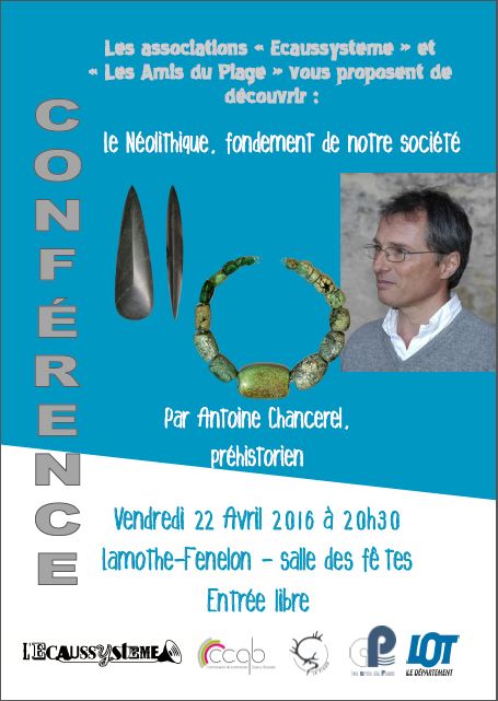 Les Associations « Les Amis du Piage » (Fajoles) et « Ecaussysteme » (Gignac), vous proposent de découvrir l’objet des études menées par Antoine Chancerel, Préhistorien, spécialiste du Néolithique et des inégalités sociales qui en découlent.
