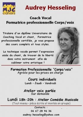 Mes lieux d’intervention :MJC de Cahors : lundi (complet), jeudi et vendredi Cours particuliers + atelier comédie musicale de 18h à 20h les lundis