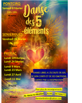 Il ne s’agit pas de savoir danser, aucune chorégraphie ni esthétisme à avoir, chacun est là, pour SOI, à l’écoute des besoins et ressentis de son Corps et de ses Emotions !