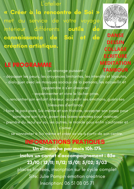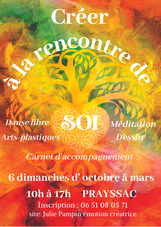 Plus d’informations sur le site: https://juliepampin.wixsite.com/emotioncreatrice/cr%C3%A9er%C3%A0larencontredesoi