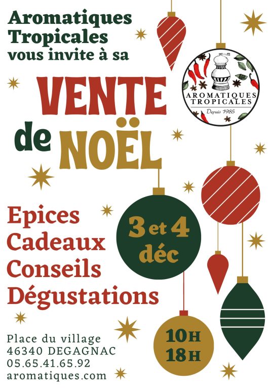 Le week-end du 3 et 4 décembre de 10 h à 18 h, les portes seront ouvertes sur la place du village de Dégagnac. Deux journées afin de vous accueillir et de vous faire goûter des baies, sentir les divers poivres, découvrir des poudres, froisser des feuilles…
