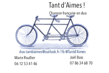 Leur complicité chantante est née il y a plusieurs années au sein du groupe vocal Babel Canto ; ils se retrouvent maintenant sur les routes du duo Tant d’Aimes.