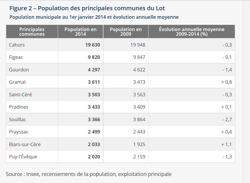 Tous les chiffres donnés concernent la population municipale des communes du Lot.