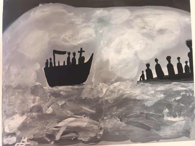 Les exilés qui, pour la plupart, n’ont jamais tenu un pinceau ont réalisé une performance. Seul ou à plusieurs, ils se sont exprimés avec sensibilité et profondeur. Merci