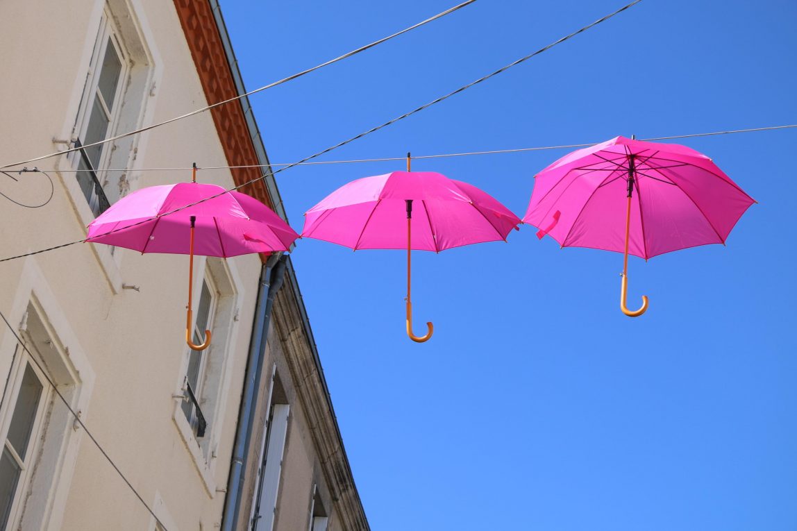 Des parapluies roses dans les rues de Gourdon …