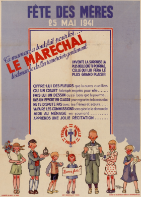 De nombreux tracts et affiches diffusés à cette période illustrent la volonté du régime de Vichy de promouvoir les valeurs familiales incarnées par des prospectus, distribués aux écoliers et aux enseignants et qui invitent les enfants à préparer de petits cadeaux pour leur chère maman.