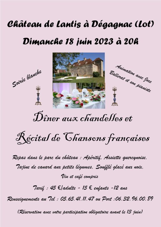 Et si vous veniez dîner aux chandelles dimanche 18 juin au château de Lantis !