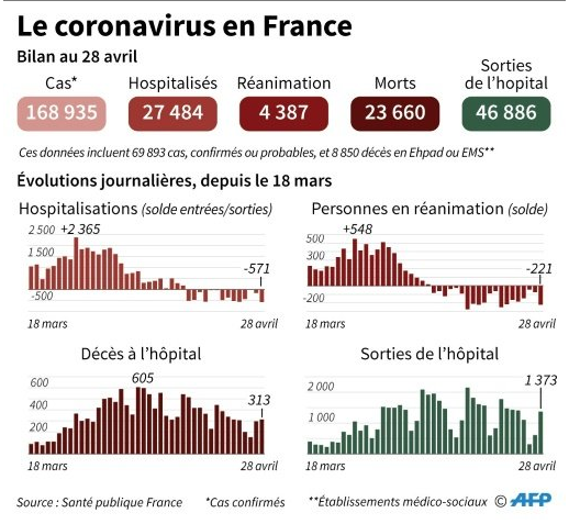 - Réouverture progressive des maternelles et écoles à partir du 11 mai, les collèges puis les lycées à partir du 18 mai, dans les départements peu infectés. Les crèches rouvriront également à partir du 11 mai