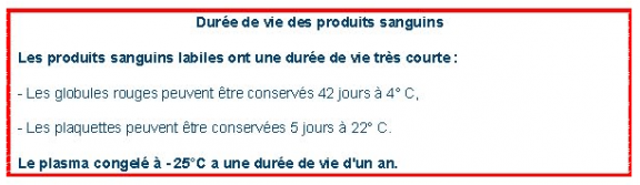 Les dons de sang doivent être réguliers et constants, car la durée de vie des produits est limitée.