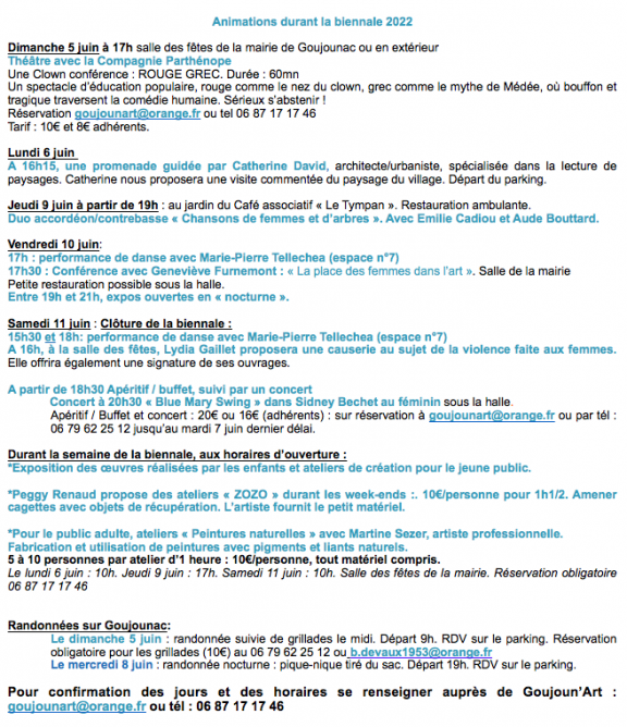 Du 4 au 12 juin, 6ème biennale à Goujounac