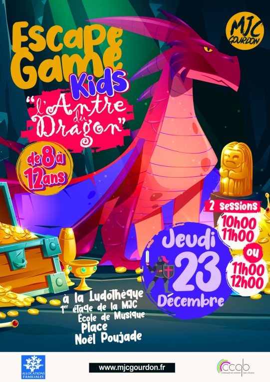 Ça se passe à la ludothèque de la MJC et vous pouvez réservez au 06.58.01.30.93 ou à claire.p@mjcgourdon.fr