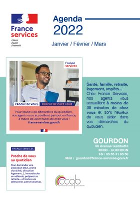 L’agenda de l’Espace France Services de Gourdon pour le 1er trimestre 2022 est disponible ICI