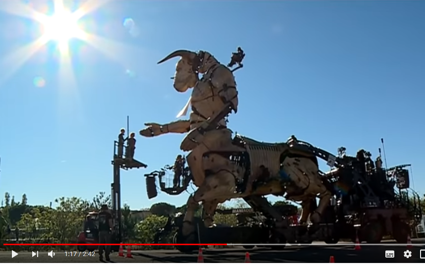 Il s’agit du prélude à un spectacle qui va voir le Minotaure se réveiller puis être rejoint par l’araignée géante, déjà vue notamment à Liverpool et à Yokohama, rebaptisée pour l’occasion Ariane et qui tissera un fil dans la ville pour lui permettre de retrouver son temple, une sorte de Capitole qu’il portera sur son dos.