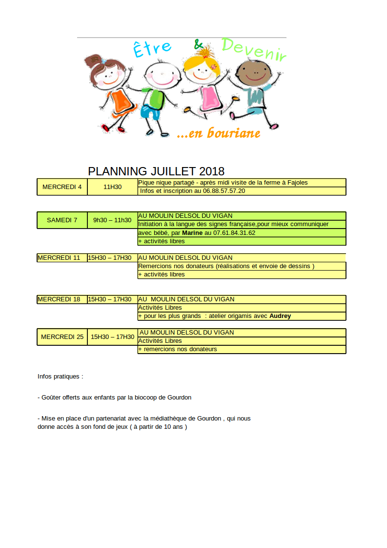 ÊTRE ET DEVENIR EN BOURIANE a pour but de permettre aux enfants et aux parents du secteur (ou de passage) de se rencontrer, se retrouver et d’organiser /de participer à diverses activités dans un moment de convivialité.