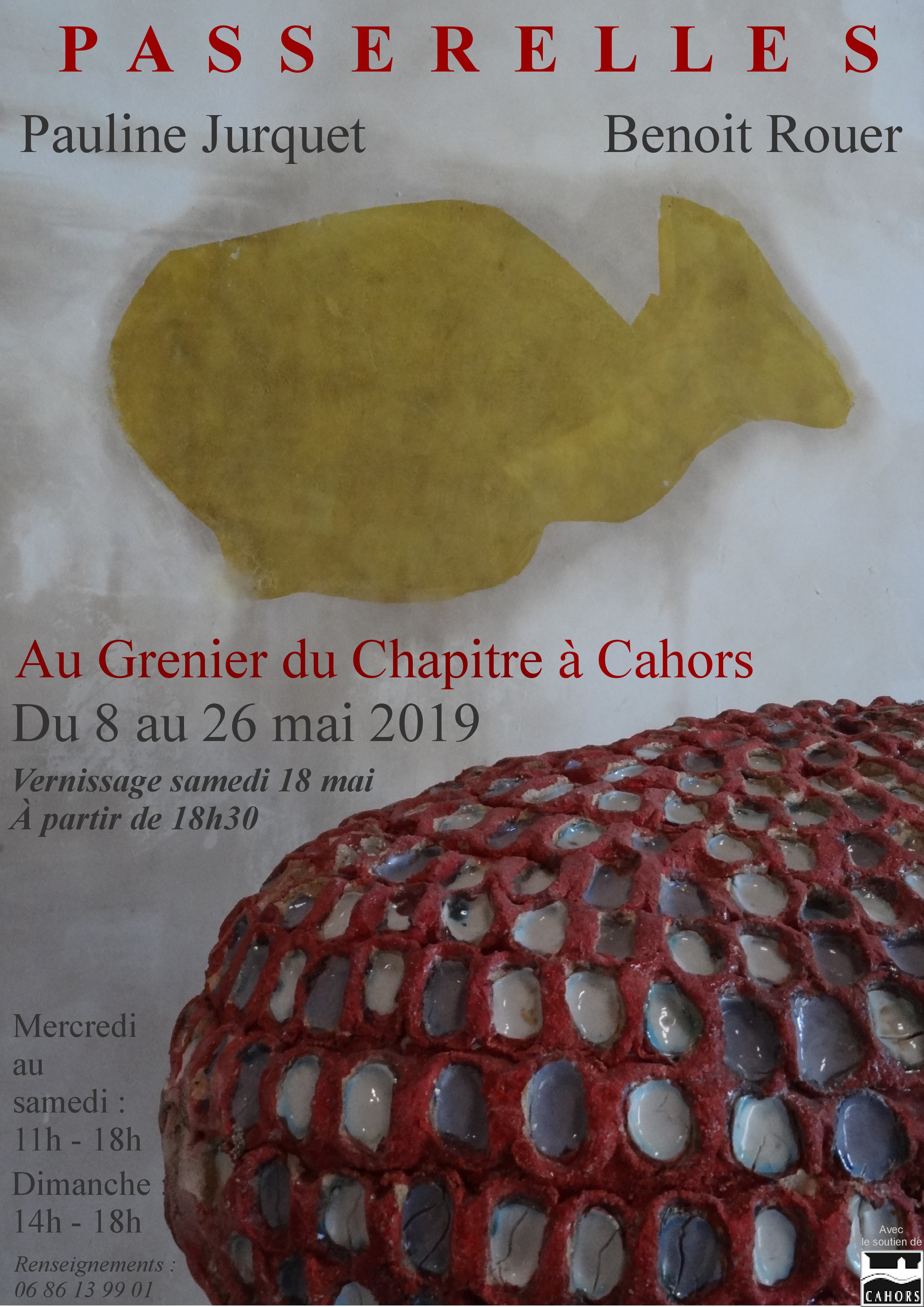 Les deux artistes seront exposés au Grenier du chapitre à Cahors du 8 au 29 mai 2019 (Du mercredi au samedi 11h-18h. Dimanche 14h-18h ).