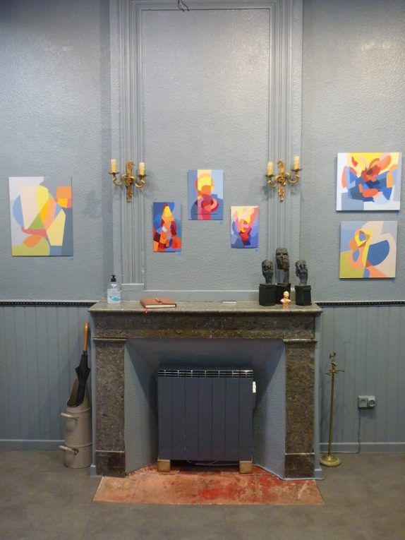 Couleurs pures ou rompues s’entremêlent pour créer des ruptures et inventer des harmonies. Accords et discordances se juxtaposent en surfaces géométriquement construites.