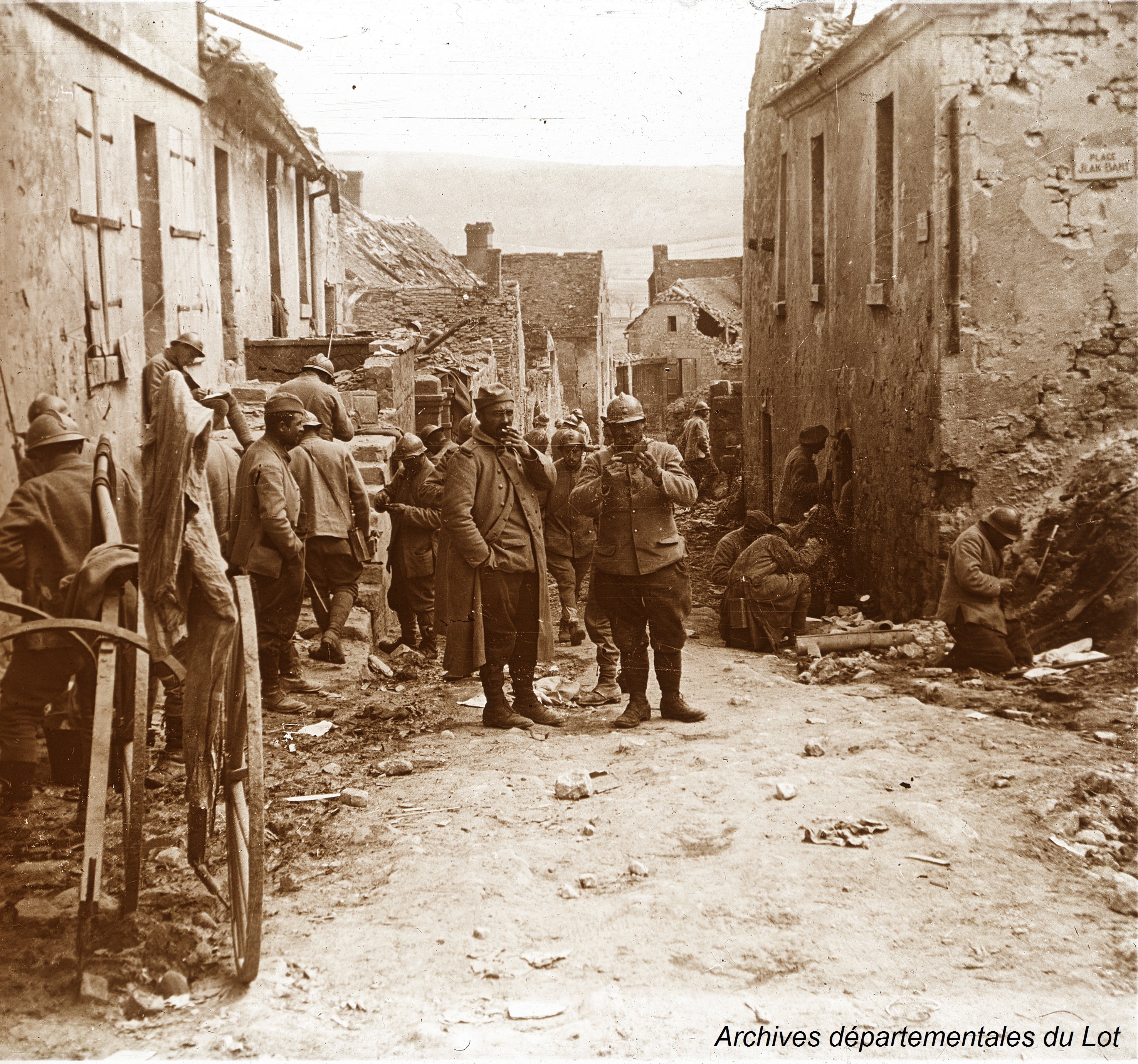 .Dans le cadre de la « Grande collecte » (organisée par la mission du Centenaire, la Bibliothèque nationale de France et le réseau des Archives de France), un particulier a fait don aux Archives départementales du Lot d’une collection de 50 plaques de verre représentant des vues de la Première guerre mondiale. À l’époque, un stéréoscope (genre de boîte en bois munie de deux lunettes dans laquelle on regardait comme avec des jumelles) permettait de visualiser les vues en relief. Ces images ont été numérisées par le Département pour pouvoir être accessibles à tous. Aujourd’hui, c’est équipé de lunettes que vous pourrez avoir le même résultat en version numérique.