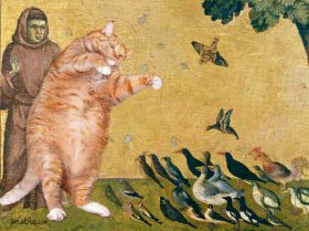 Tomber dans un tel panneau, voilà c’est fait. Ce tableau du chat prêchant me paraissait tellement absurde que j’ai vérifié!!! Ce N est pas un chat mais saint François qui prêche évidemment. Giotto doit ce retourner dans sa tombe devant un tel collage vulgaire voulant reecrire l’histoire. Un journaliste vérifié ses sources. Je ne sais pas à quel niveau a été faite l’erreur, mais ca nous prouve bien qu’il n’y a pas que sur Facebook qu’il y a des ‘fakenews ‘ ou fausses informations diffusées sur le net!!!